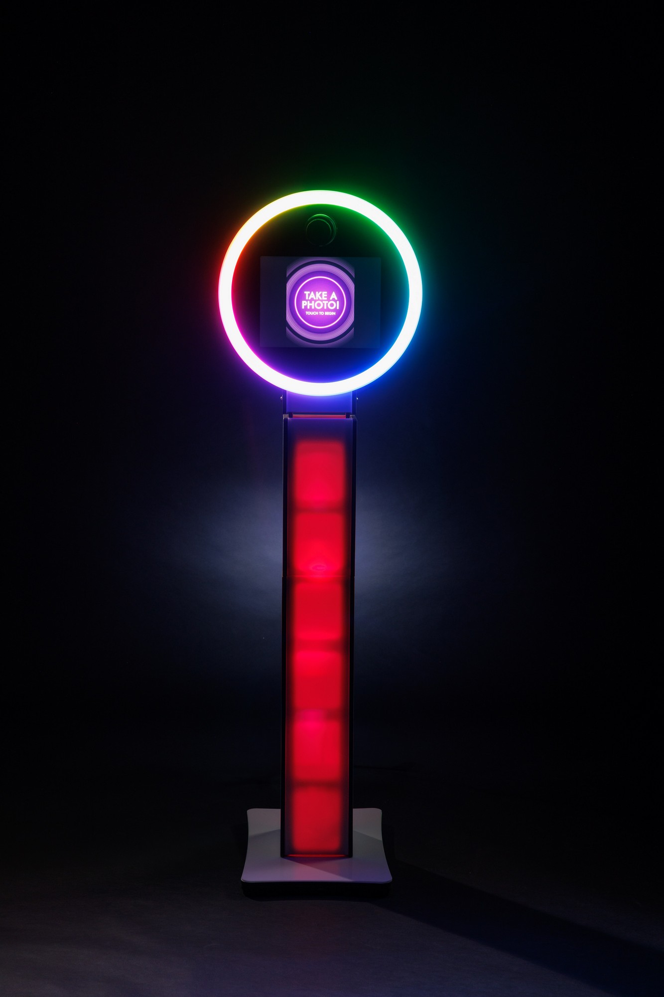 The Duo Pro is a Hybrid photo booth that features the popular Curve photo booth stand with a removable handheld roamer head. Brand new iPad 13" shows the images while a Canon mirrorless camera creates them. Super cool LED lights can be static or move continuously. In addition, 4x6 prints are sent wirelessly to our high speed printer. Photos can also be sent via text and email. Comes with attendant, props and printer. Requires 3'x6' of space. Access to power optional.